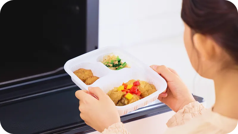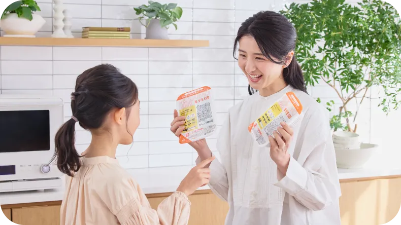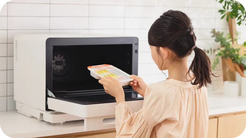 - 食べたい時に、トレーのまま電子レンジで温めるだけ。すぐにあたたかいごはんのできあがり!