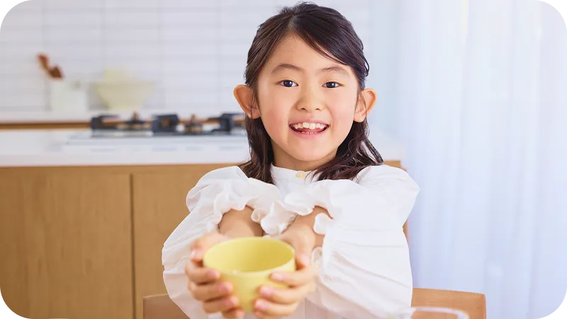 カルシウムは丈夫な骨や歯をつくり、心の安定も支える必須栄養素ですが、成長期に最も不足しがち。一生を支える「カラダの土台」を育むために、 平均70mg以上を補える設計にしました。