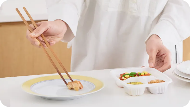 - 調理済みのワンプレートを冷凍便でお届け。冷凍庫にストックしておけるのでいつでも安心!